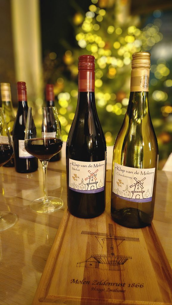 En natuurlijk hebben we ook heerlijke molenwijn. Alle opbrengsten komen ten goede aan het onderhoud van onze molen.