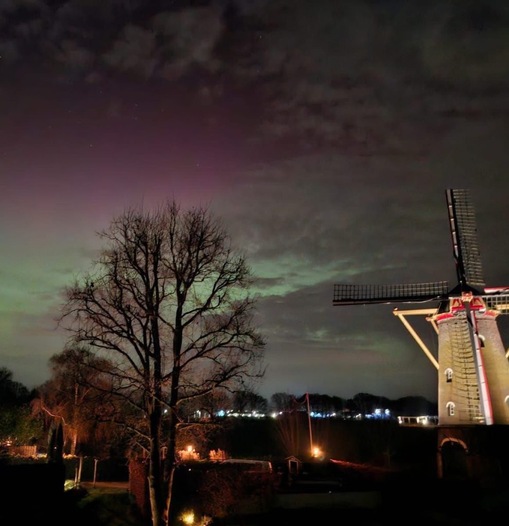 Wat bijzonder! Op 19 januari 2026 was het noorderlicht te zien boven onze molen. Veel dank aan buurman Caspar Houben voor de foto.